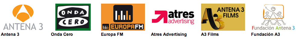 En primer lugar tenemos Antena 3 TV que abarca todos los canales analizados, en segundo lugar tenemos Uniprex que se ocupa de las emisoras de radio. Antena 3 films se dedica a la producción cienmatográfica y es el motor del cine español. Antena 3 Multimedia se centra en las nuevas comunicaciones, internet, móvil, etcetera. Atres Advertising es un grupo perteneciente a Antena 3 que se dedica a hacer publicidad. Por ultimo Antena 3 Eventos se basa en esto. Eventos creados y dirigidos por la marca. En estos seis sectores se basa la marca que estamos analizando, no solo pensemos que Antena 3 es una simple cadena televisiva, es mucho más.